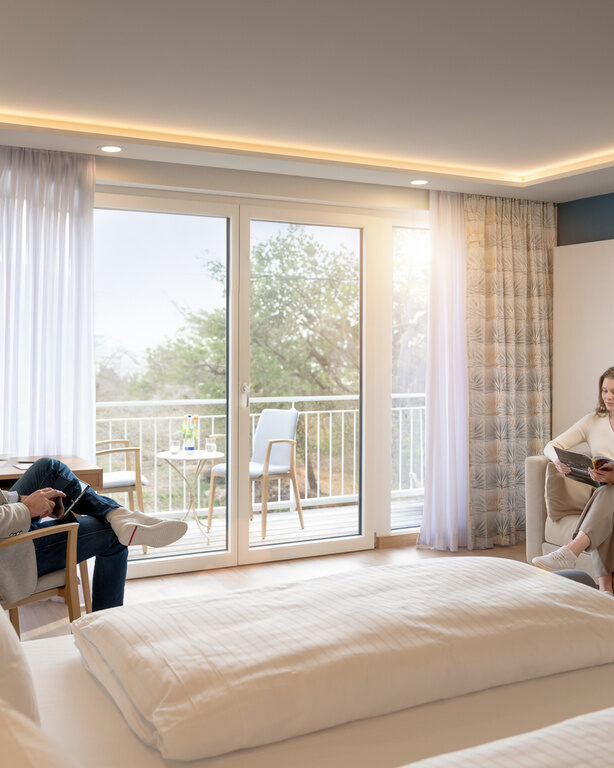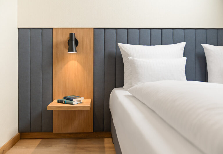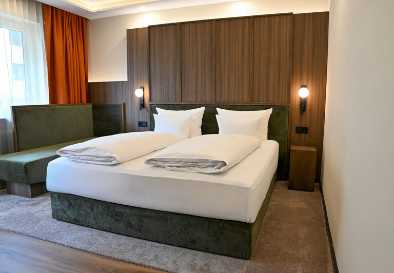 Entspannen Sie in unseren komfortablen, individuell eingerichteten Zimmern. Bei uns erwarten Sie 12 Einzelzimmer, 43 Doppelzimmer und 5 Dreibettzimmer, die sich im ****Sterne-Haupthaus und im ***Gästehaus (Selbsteinschätzung) befinden. Die beiden Häuser liegen direkt nebeneinander und sind durch einen komfortablen Verbindungsgang miteinander verbunden.
